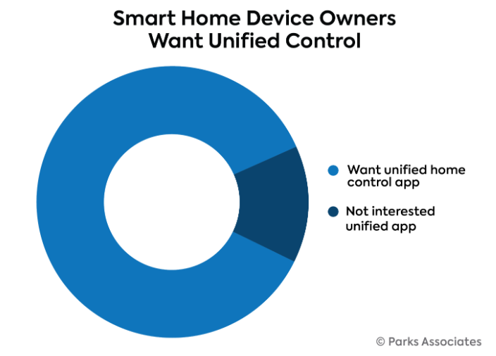 Nearly all home device owners are interested in a unified app, according to Parks Associates latest research of 10,000 US internet households in the US regardless if the devices are attached to security systems or are single point solutions.