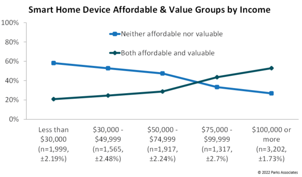 Figure 4. Parks Associates data on the perception of smart home devices affordability and value based on income earnings.