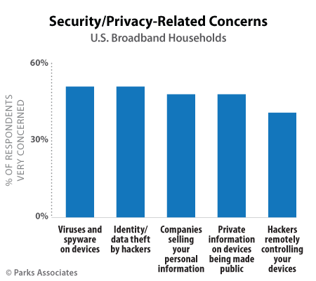 New Q3 2015 consumer research from Parks Associates finds 76% of U.S. broadband households are very concerned about their data security and personal privacy when using connected devices. The Demand for Device & Network Security shows identity and data theft are among the highest security concerns when using connected devices, but only 6% of U.S. broadband households have experienced those problems in the last year.