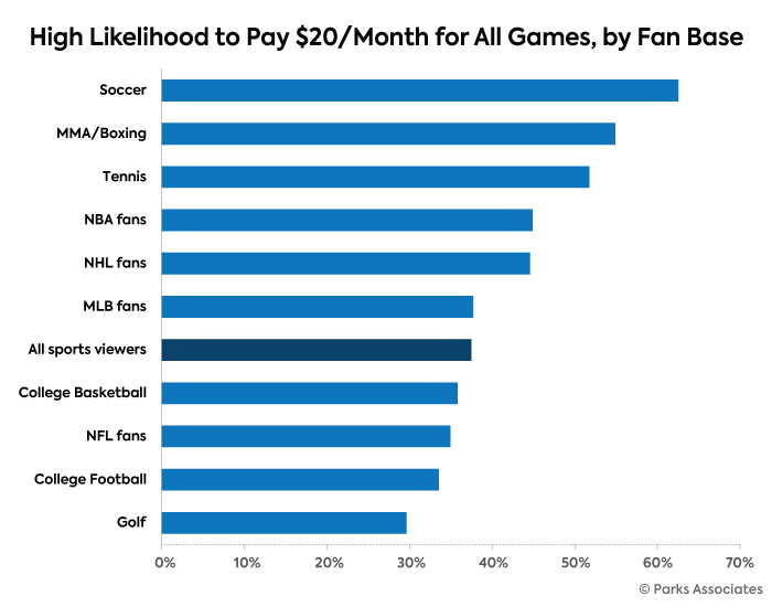 “Sport media rights holders want to get games in front of as many eyes as possible,” said Jennifer Kent, VP, Research, Parks Associates. “The audience reach of online-only and streaming services is enormous. To compete with the digital titans, media conglomerates with conventional and online services are shifting finances and resources to launch, improve, and develop streaming services targeted at sports fans.”