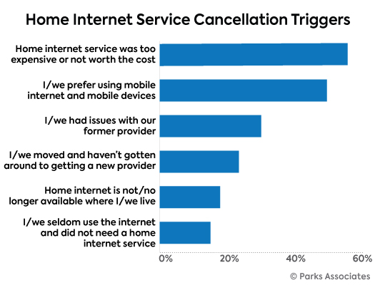 According to the research, there are over 13.9 million home internet cord-cutters in the US, a missed revenue opportunity of more than $10.5 billion. Cord-cutters exist for a variety of reasons – cost and preference for mobility are top triggers, but technical issues and lack of availability also impact their decisions.