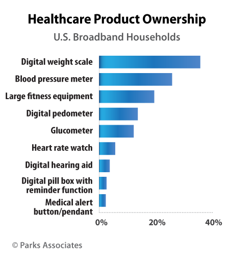 New digital health and Internet of Things (IoT) research from Parks Associates finds nearly 60% of U.S. broadband households own some kind of personal health and wellness device, such as a digital weight scale, blood pressure meter, digital pedometer, or glucometer.