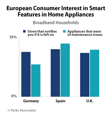 According to Parks Associates research, 15% of U.S. broadband households plan to purchase a smart appliance in the next 12 months, and European consumer interest in smart home appliances is growing.