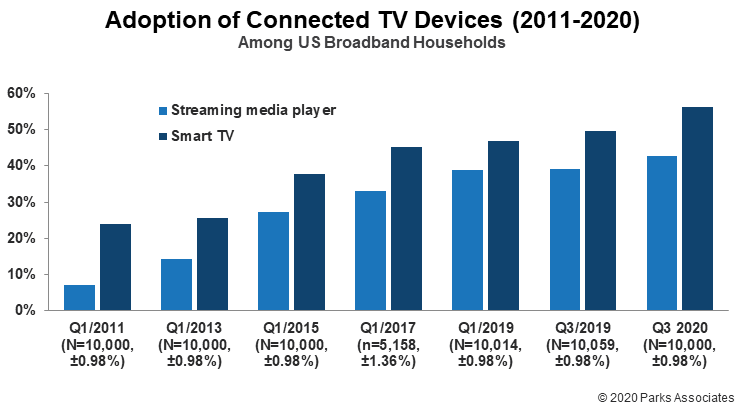 Parks Associates looks forward to seeing how the overall connected TV landscape may have changed when we launch our next consumer survey in Q1 2021.