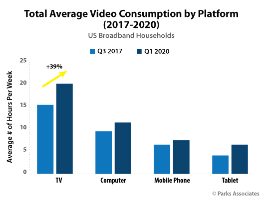 The COVID-19 health crisis has fundamentally impacted the lifestyles and routines of all consumers. Shelter-in-place orders and work-at-home mandates have driven in-home video consumption to unprecedented levels, with nearly 3 in 10 US broadband households reporting an increase in usage of online video services and nearly 1 in 5 reporting an increased use of pay-TV services.
