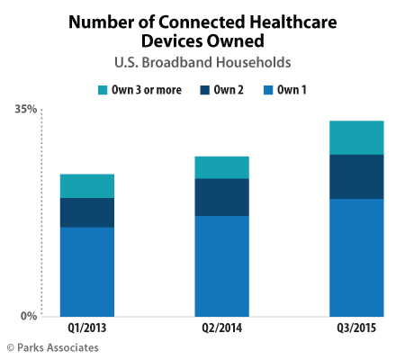Parks Associates research shows that about a third of U.S. broadband households own at least one connected health device, but less than half of current caregivers with smartphones use an app to help with their caregiving tasks. Technology-supported care holds the promise of keeping elderly patients of those with chronic diseases in their homes while enhancing their life comfort via intelligent preventive and alert systems.