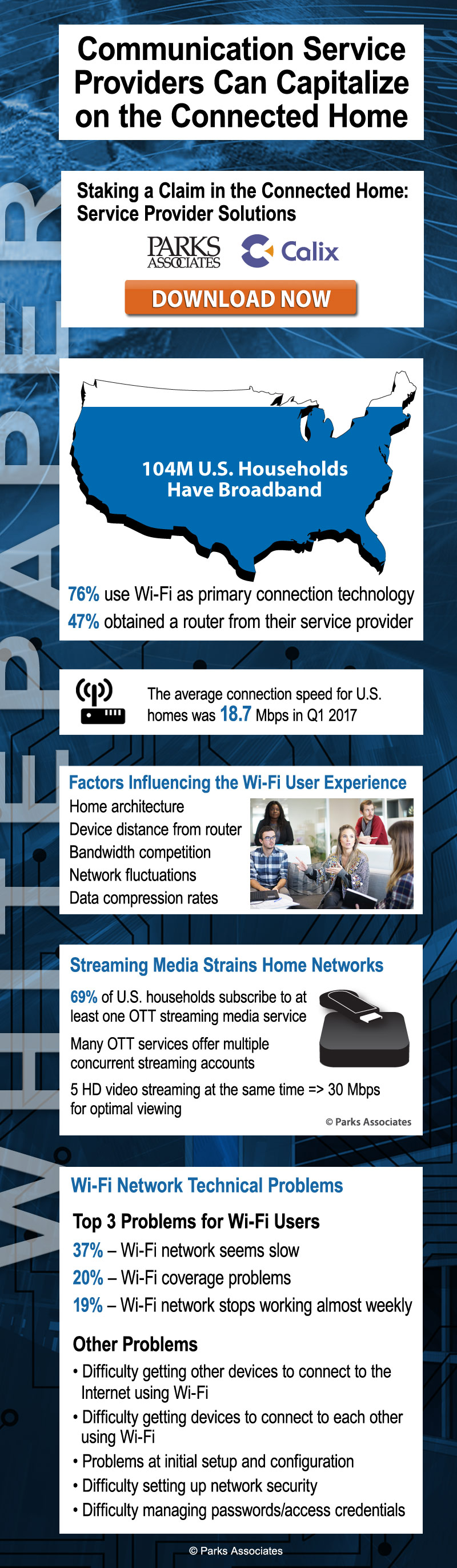 The themes and trends below are explored in depth in a new whitepaper from Parks Associates and Calix, Staking a Claim in the Connected Home: Service Provider Solutions. Download your copy today!