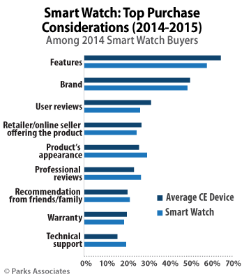 1. Migration from gadget-like design to style-conscious design. Though early entrants to the smart watch market were focused on the technology of the device, new entrants with backgrounds in fashion are influencing consumer expectations for design and aesthetics. Style is becoming an increasingly important factor for consumers—product appearance ranks as the third most important factor in a smart watch purchase decision.
