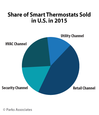 “Smart thermostats already account for more than one-half of the smart home devices in U.S. broadband households,” said Tom Kerber, Director, Research, Home Controls & Energy, Parks Associates. “Many utilities have promoted smart thermostats as part of their home energy management initiatives; however, the retail channel accounts for the most units sold last year, nearly 45% of the total market, so opening utility programs to include the variety of different types and brands of devices is an important consideration.”