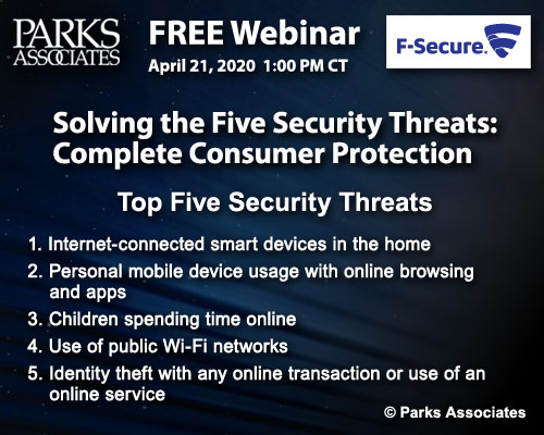 To register for the webcast, visit http://www.parksassociates.com/f-secure-apr2020. To request data or an interview, please contact Rosey Ulpino at rosey@parksassociates.com, 972.996.0233.