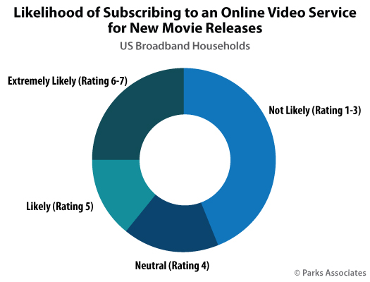 Parks Associates research also shows movie theaters have jumped back to the top preference to watch new release films and that the majority of consumers are neutral or unlikely to subscribe to another OTT video service just to watch a new release.