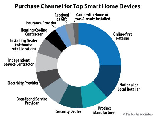 25% of buyers for the most adopted smart home devices report acquiring via an online-only retailer such as Amazon