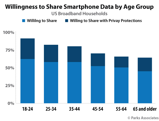 Parks Associates research finds consumers in US broadband households are generally willing to participate in contact tracing, including sharing smartphone data, to help combat the coronavirus outbreak, although willingness varies based on age and their personal experience with the disease. The Market Snapshot COVID-19 Contact Tracing: Consumer Perspectives reports among heads of US broadband households ages 18-24, 90% are willing to share smartphone data if privacy protections are offered. In contrast, just over 63% of those age 65+ are willing to share data.