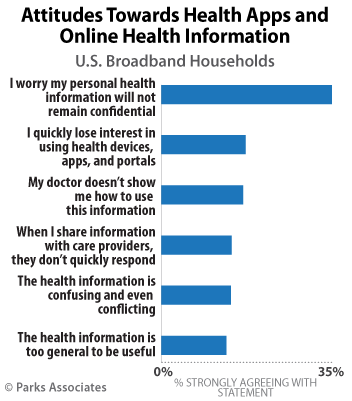 “The connected health industries, device manufacturers, and app developers not only need to ensure they have strong security measures in place but also that consumers are aware of the steps they are taking to protect their data,” said Harry Wang, Director, Health and Mobile Product, Parks Associates. “Already 35% of consumers worry their personal health information will not remain confidential if online, and with high-profile data hacks making big headlines, consumers are expecting companies to take strong security measures to protect them.”