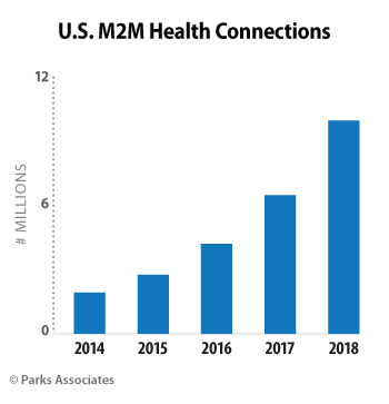 The research firm reports that connected health devices accounted for approximately 4% of all M2M (machine-to-machine) connections in the U.S. in 2014. Parks Associates estimates that portion will double over the next five years as the healthcare vertical catches up to other, more mature M2M verticals, such as automotive and industrial telematics.