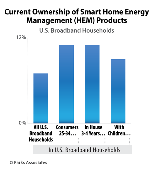 "Younger consumers also own multiple devices at higher rates—4% own five or more smart energy management devices, and they are the majority of those most willing to purchase a smart home system," said Tom Kerber, Director, Research, Home Controls & Energy, Parks Associates. "The market segment of consumers 25-34 years old is a key target for new smart home solutions that consolidate control of multiple devices through a smartphone or tablet."