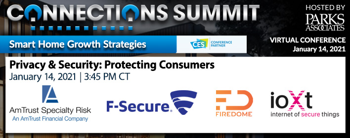 Parks Associates will host the CONNECTIONS Summit Privacy & Security: Protecting Consumers session on Thursday, January 14 from 3:45 p.m. - 4:30 p.m. CT. This session will be moderated by the firm's senior analyst, Patrice Samuels.