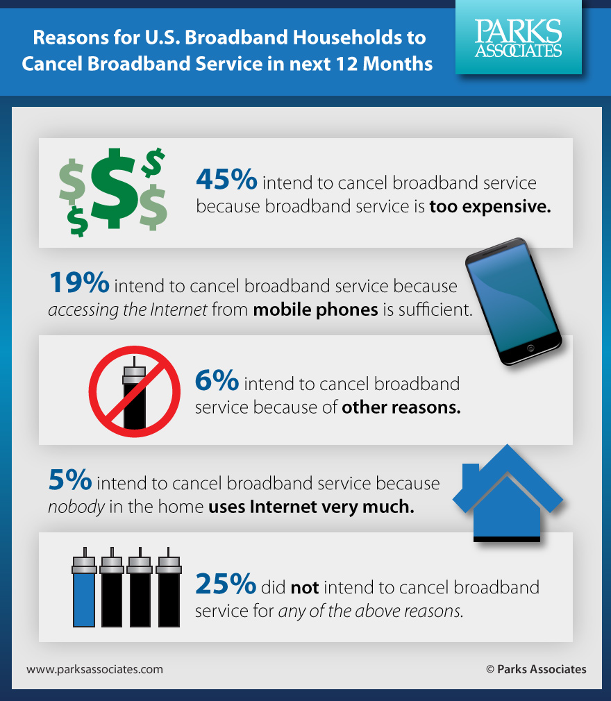 In the infographic below, Parks Associates shares some of the top reasons why U.S. consumers are considering canceling their broadband service in the next 12 months: